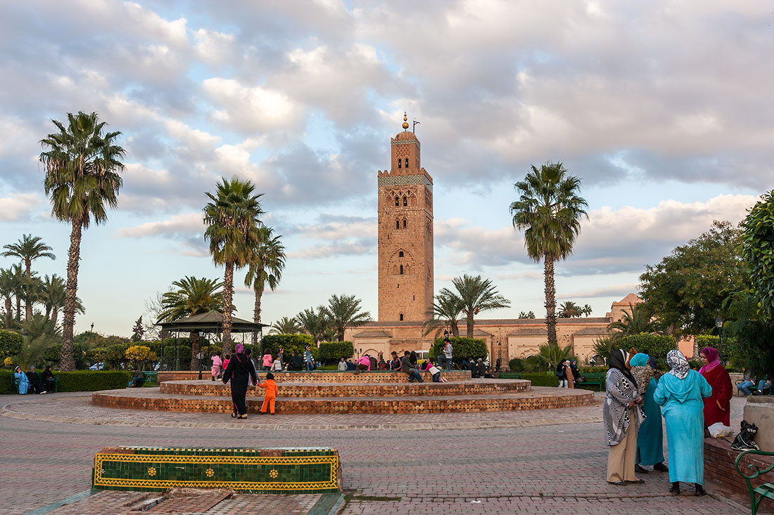Dirigi-me para a Mesquita Koutoubia, construída em 1162 para ser uma das maiores mesquitas do mundo muçulmano Ocidental, possuindo um dos mais antigos e bem conservados minaretes.